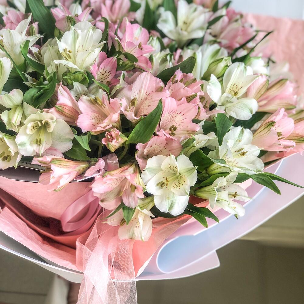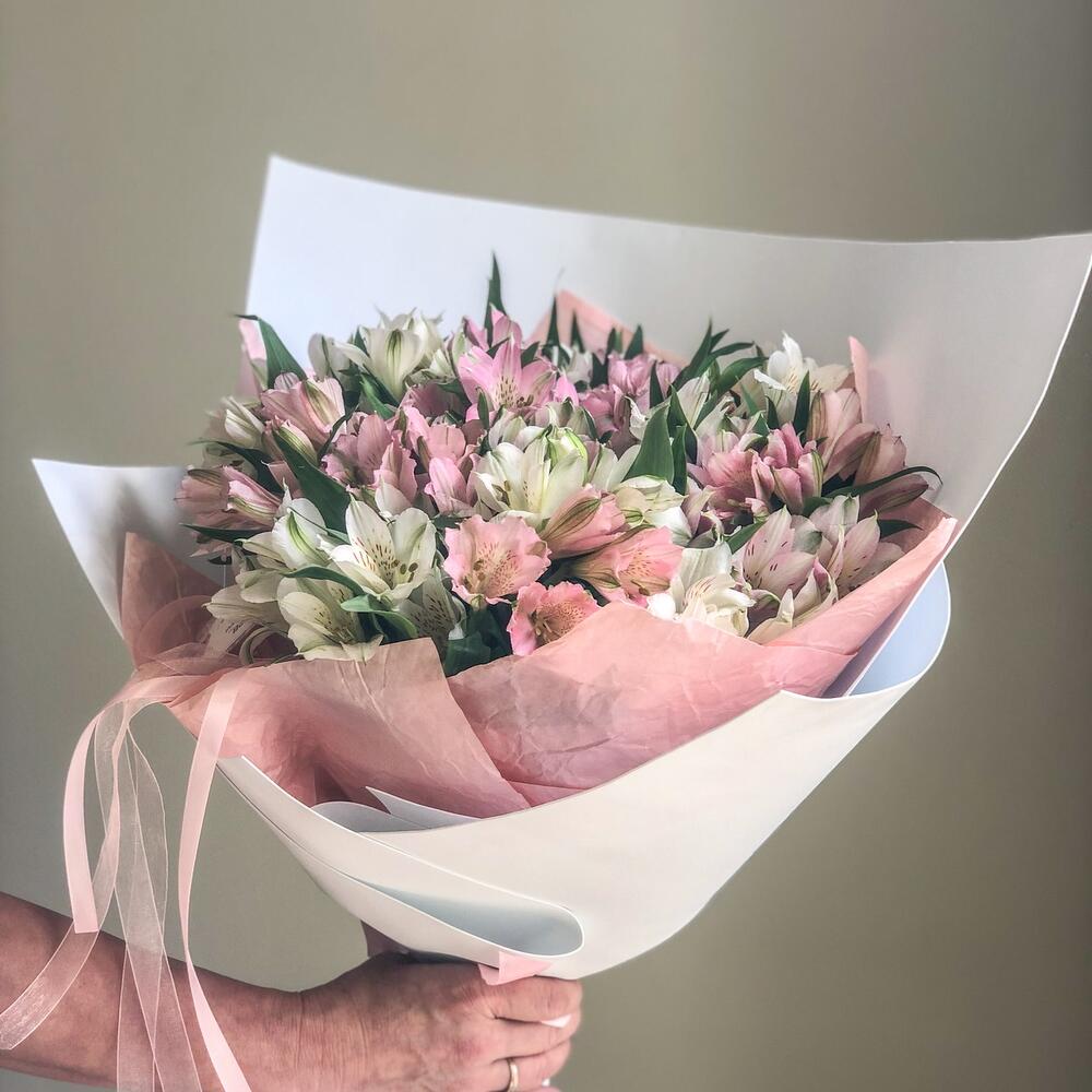 Альстромерия – 23 шт.Дизайнерская упаковка – 1 шт.Лента атласная – 2 шт.