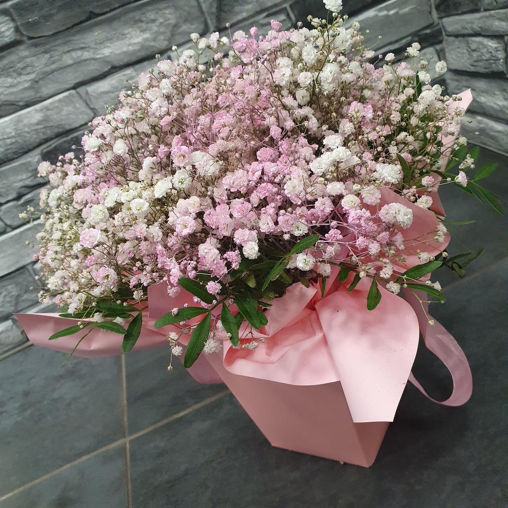 Гипсофила – 7 шт.Зелень – 5 шт.Оазис флористический – 1 шт.Коробка – 1 шт.