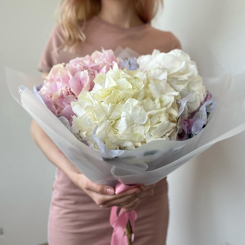 Монобукет из розовых и белых гортензий