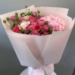 Альстромерии, Гвоздики, Кустовые розы, Лизиантусы, Розы, Хризантемы