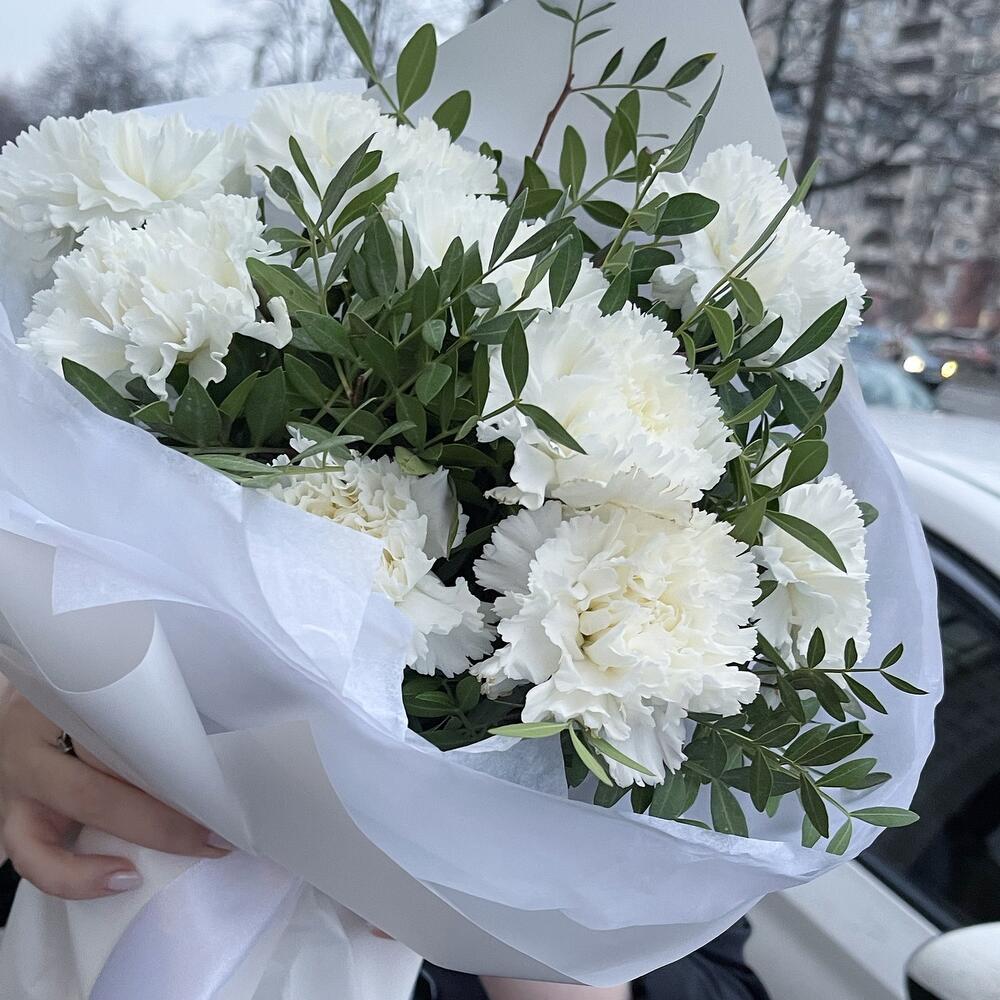 Белые диантусы в дизайнерском оформлении