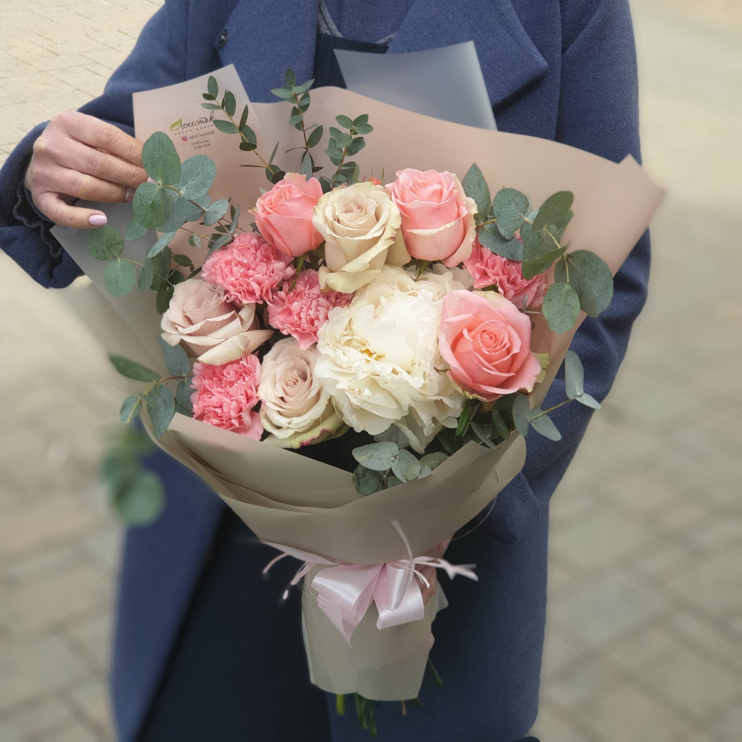 Гвоздики, Кустовые розы, Лизиантусы, Пионовидные розы, Розы