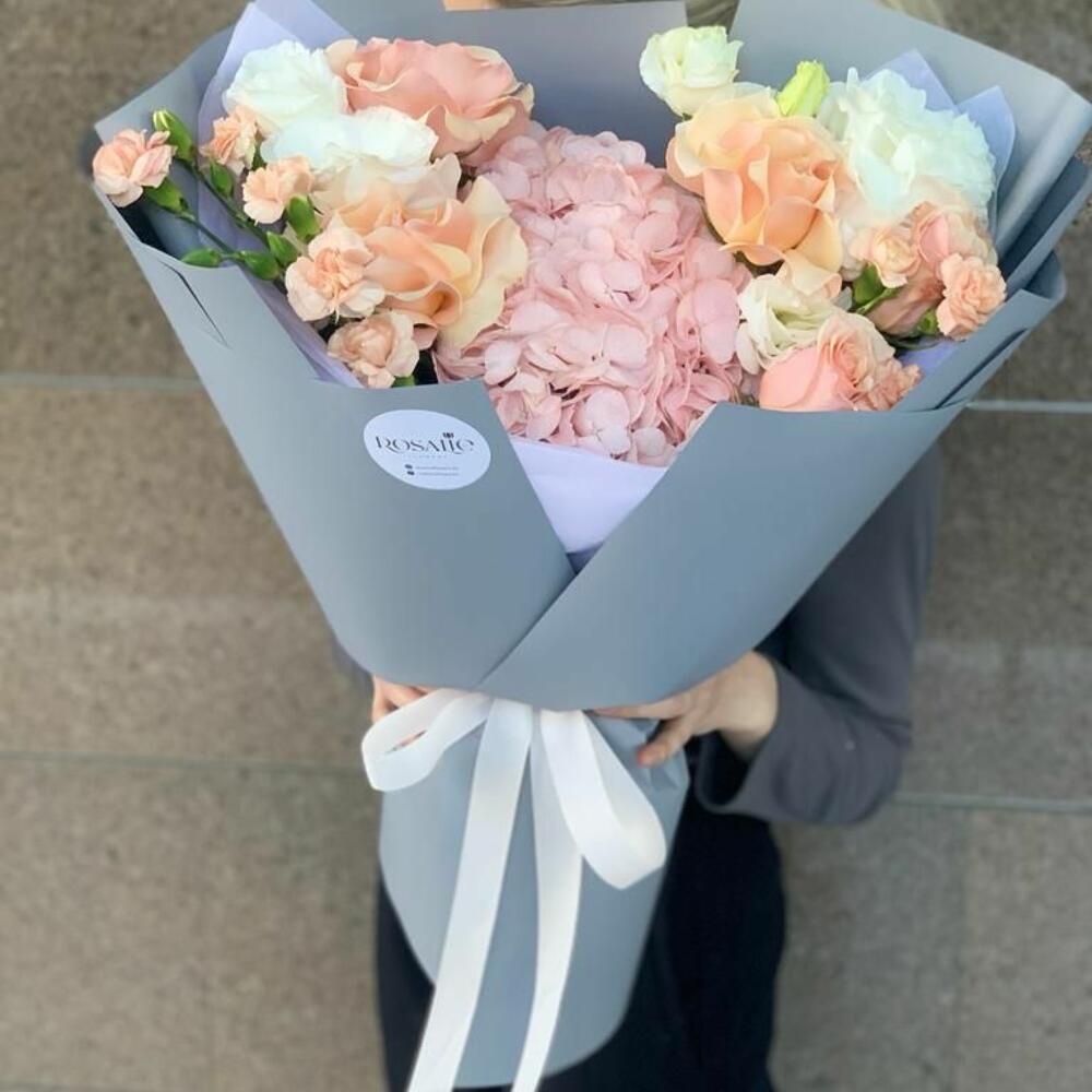 Гвоздики, Лизиантусы, Розы, Тюльпаны