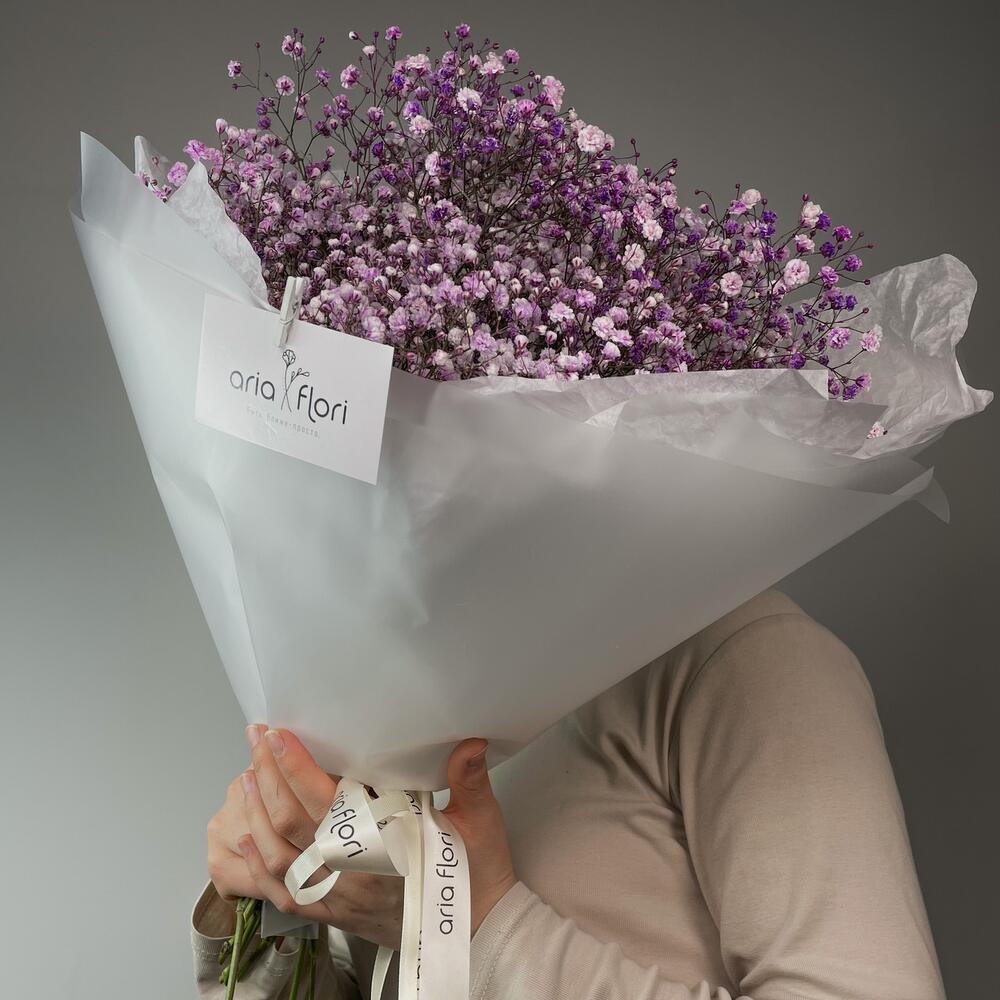 Гипсофила – 5 шт.Упаковка дизайнерская – 1 шт.подкормка для срезанных цветов – 1 шт.любовь флориста – 1000 шт.записка с вашим текстом – 1 шт.медиант ручной работы из бельгийского шоколада – 1 шт.советы по уходу за срезанными цветами – 1 шт.