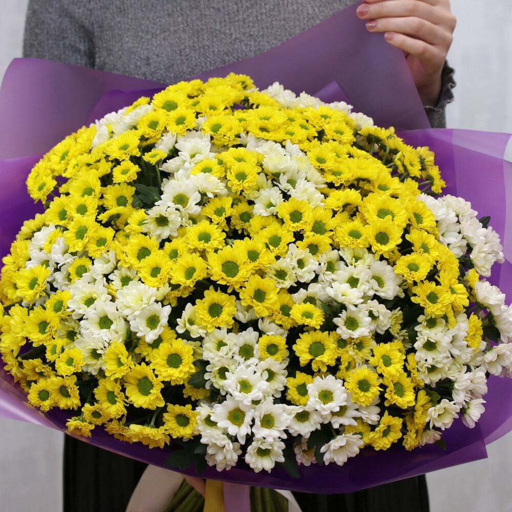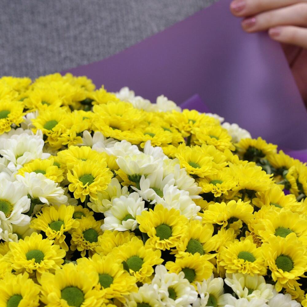 Букет из 49 кустовых хризантем Сантини в стильной упаковке