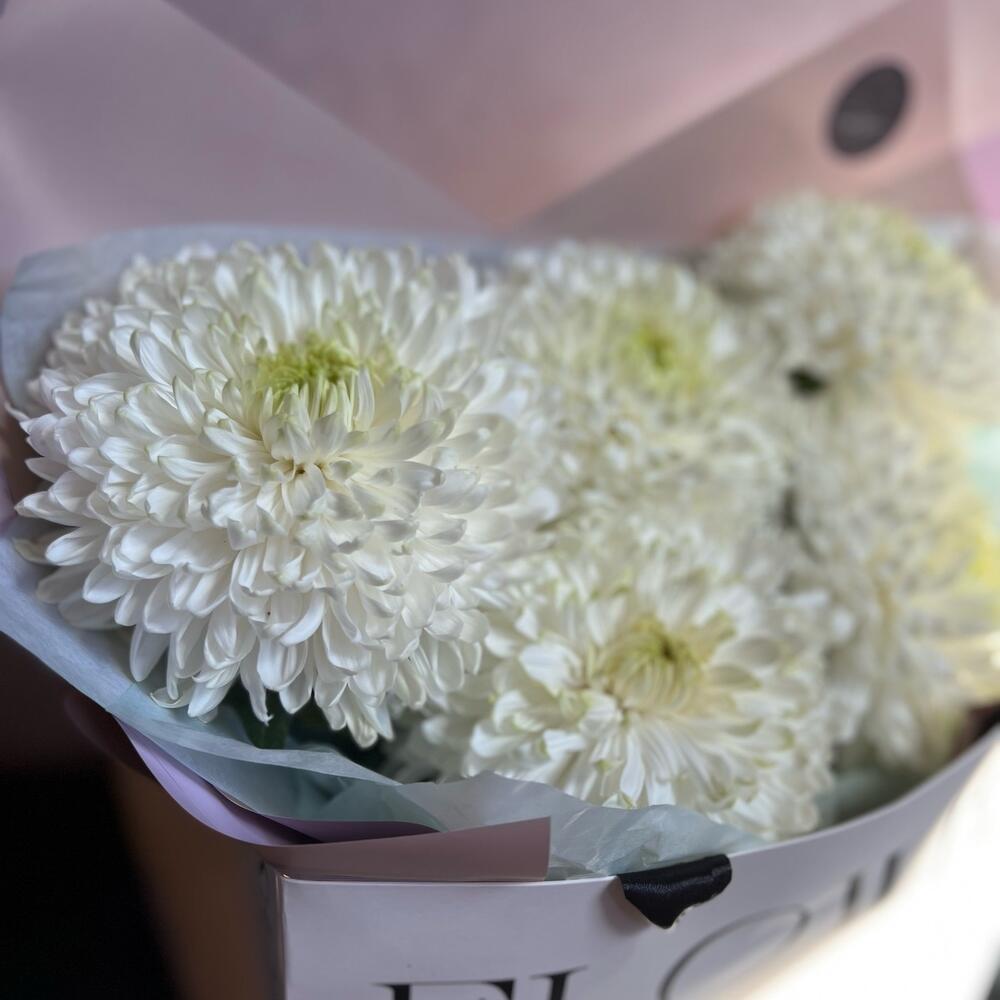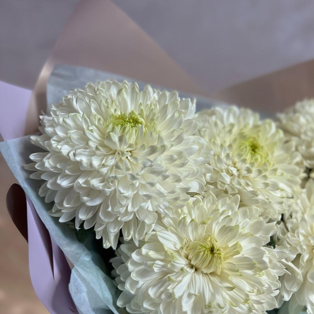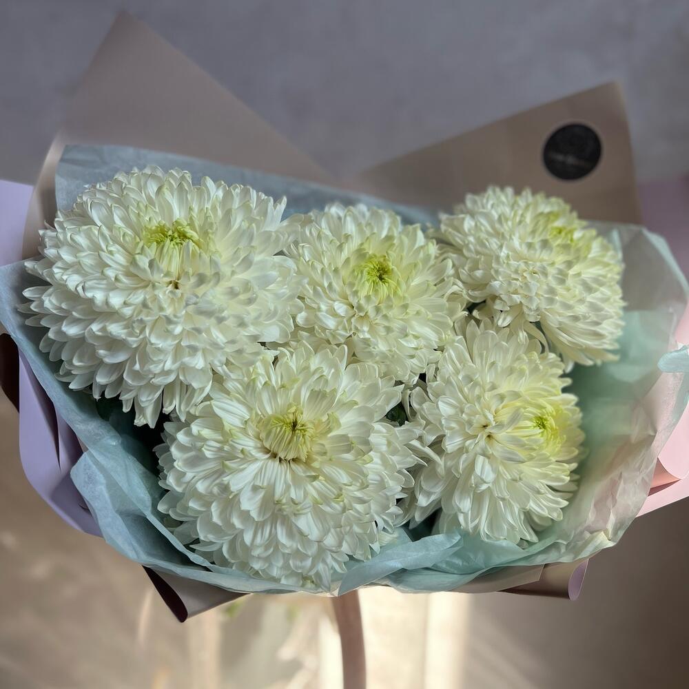 хризантема magnum – 5 шт.декоративная упаковка – 1 шт.Атласная лента – 1 шт.