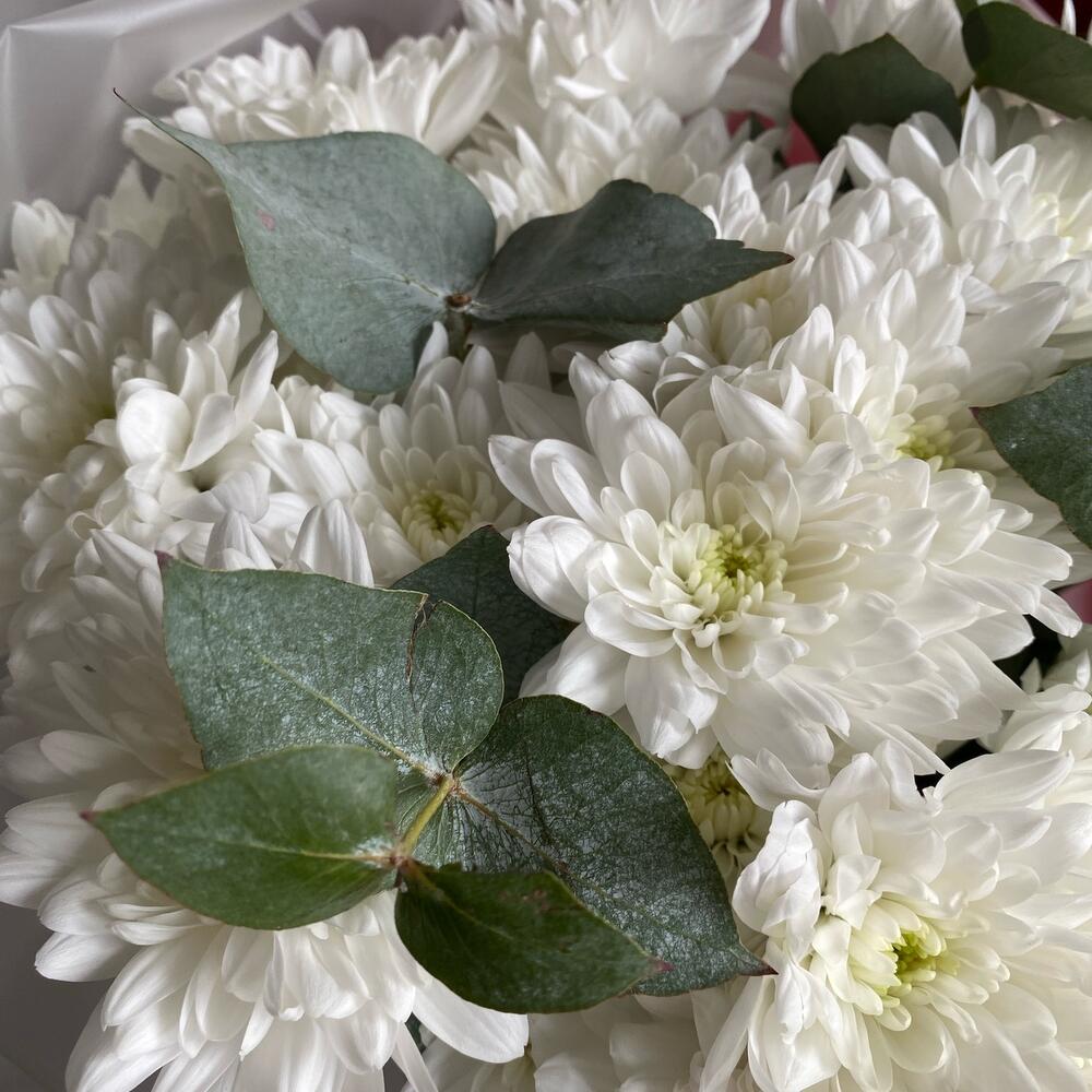 Монобукет из кустовых хризантем с эвкалиптом