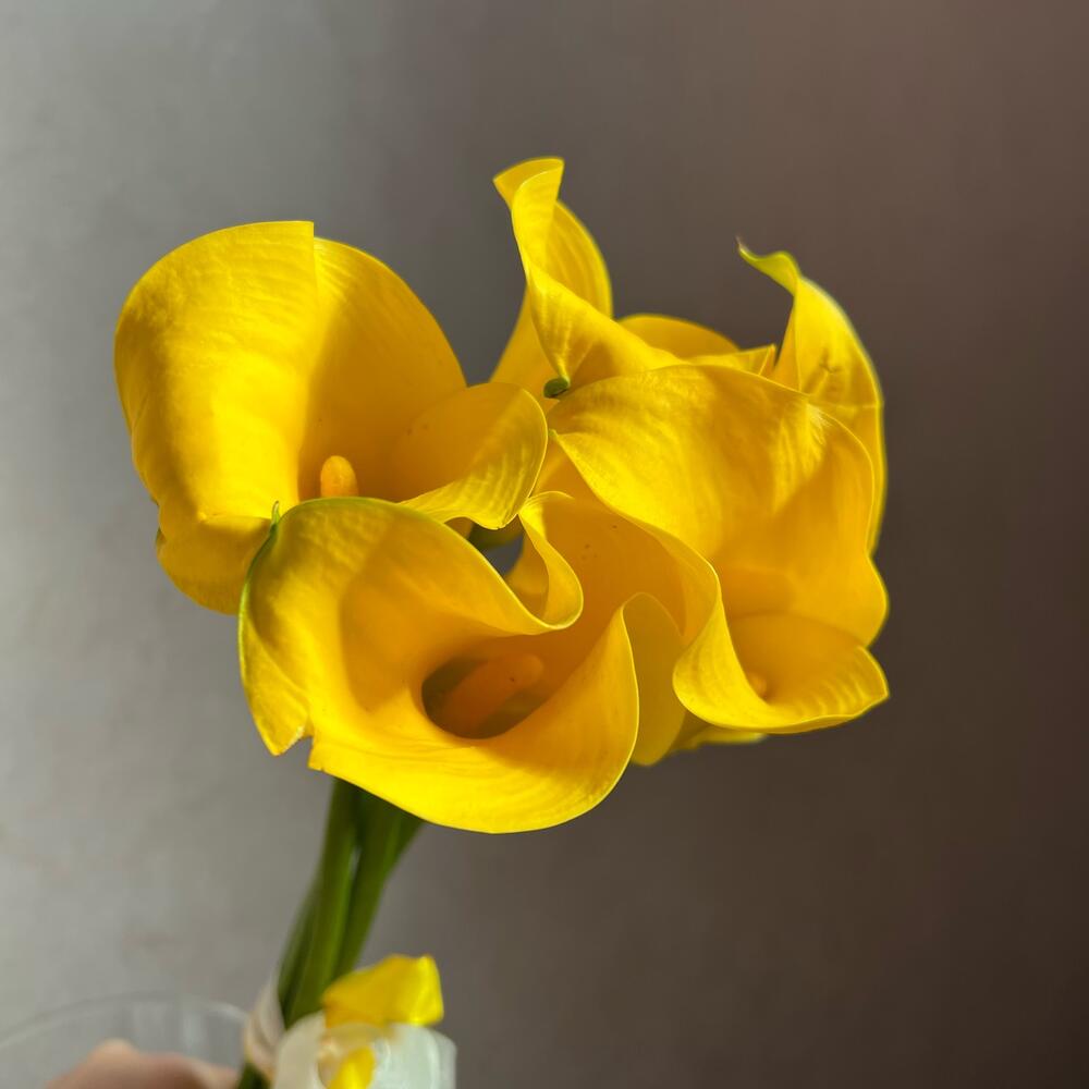 Атласная лента – 1 шт.каллы желтые – 5 шт.