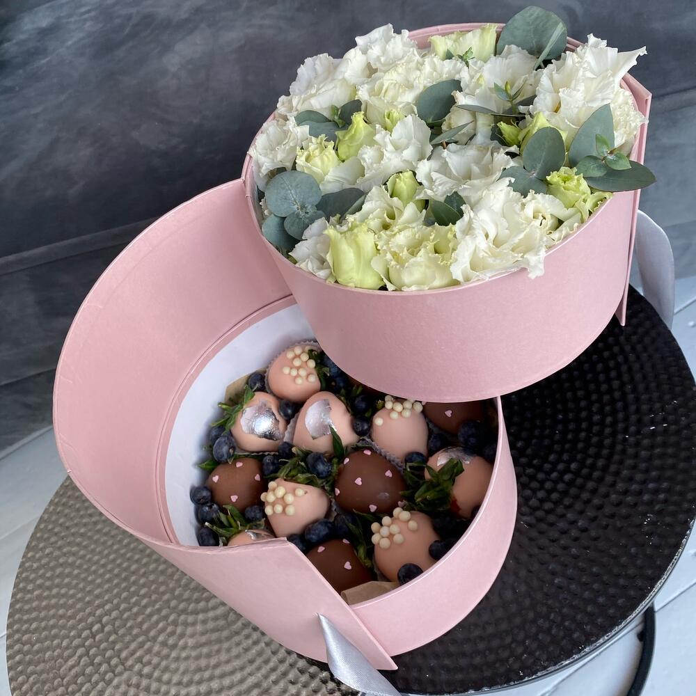 эустома белая – 5 шт.Клубника в шоколаде callebaut (бельгия) – 12 шт.
