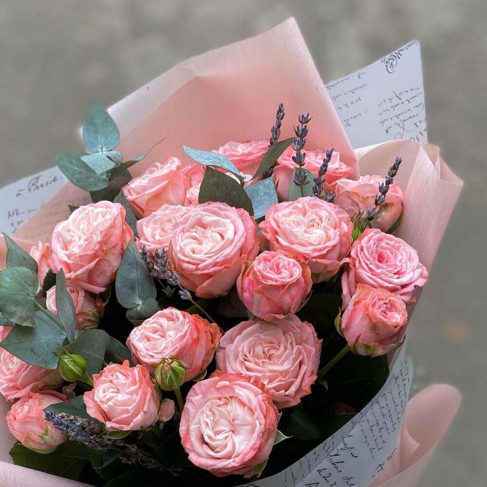 Мадам бомбастик – 13 шт. Эвкалипт – 3 шт. Упаковка дизайнерская – 2 шт. Атласная лента – 1 шт. Открыточка с вашими пожеланиями – 1 шт. доставка – 1 шт.