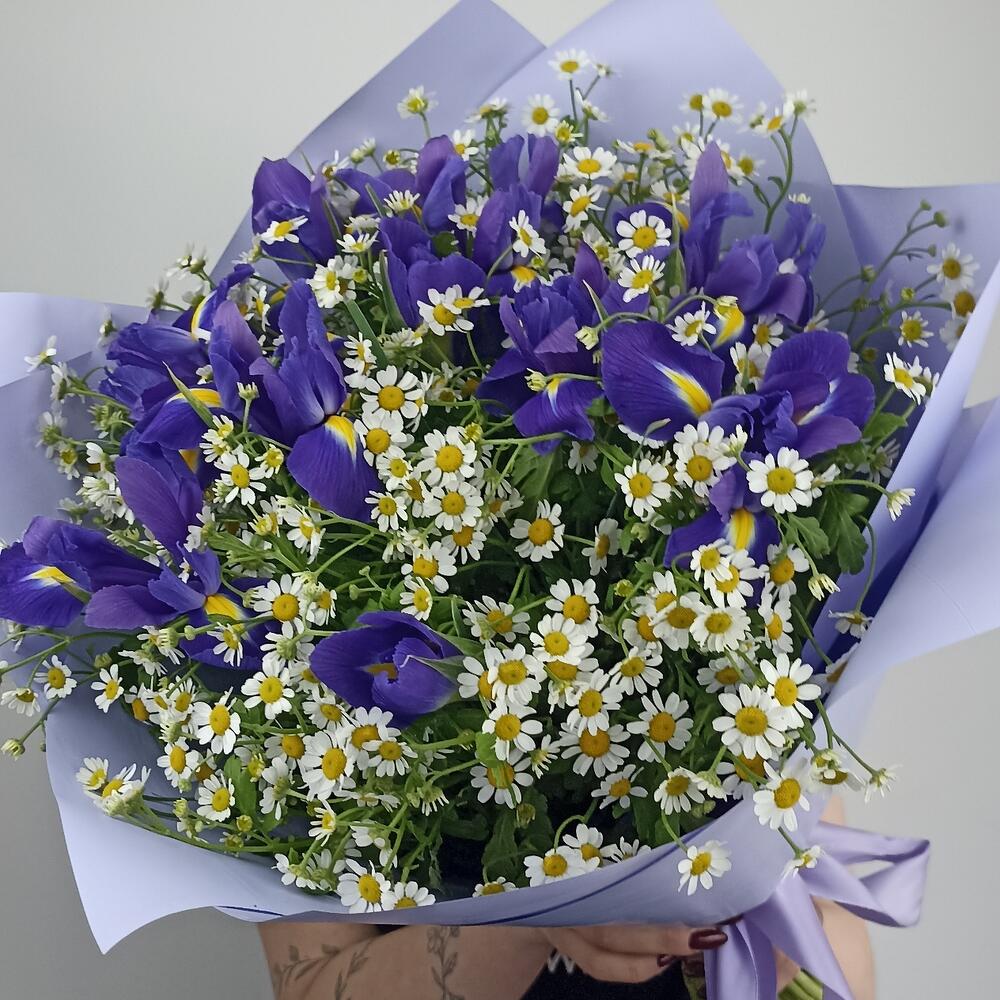 Букет матрикария и ирисы