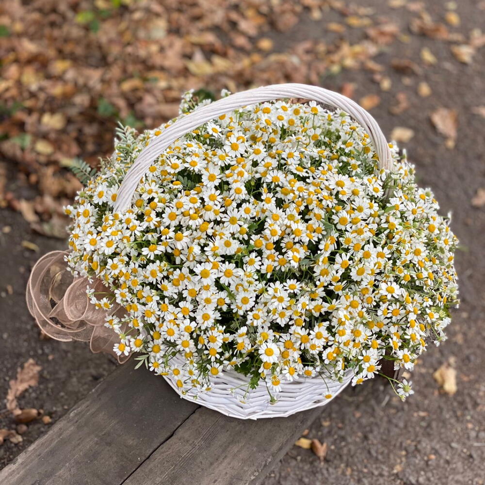 Корзина плетеная – 1 шт. полевые ромашки – 25 шт.