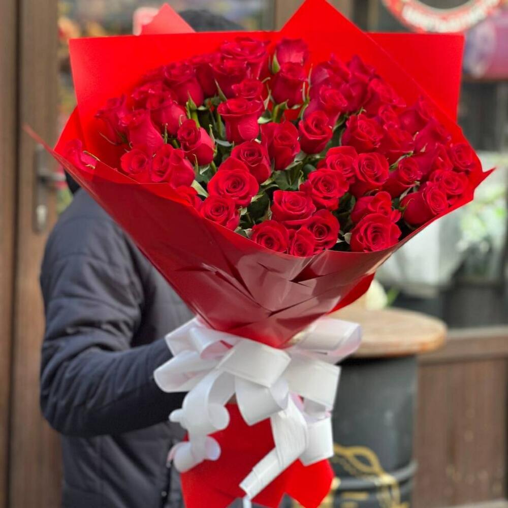 Метки: 51 роза, Красные розы, от 5000 руб, Роза 80 см