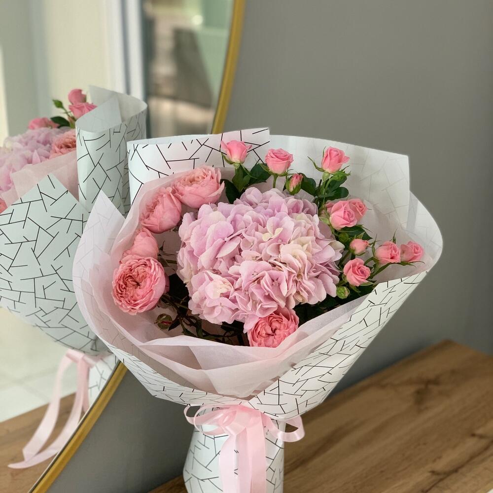 Гвоздики, Кустовые розы, Пионовидные розы, Розы