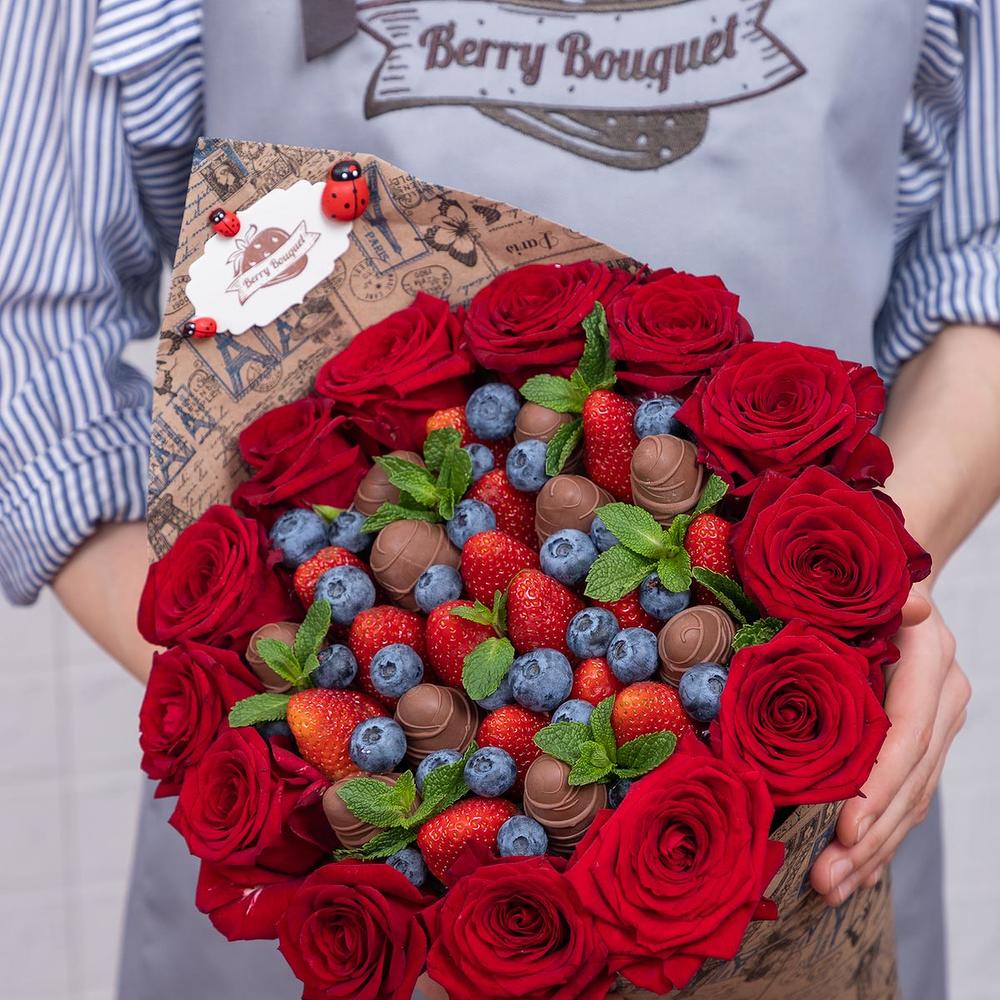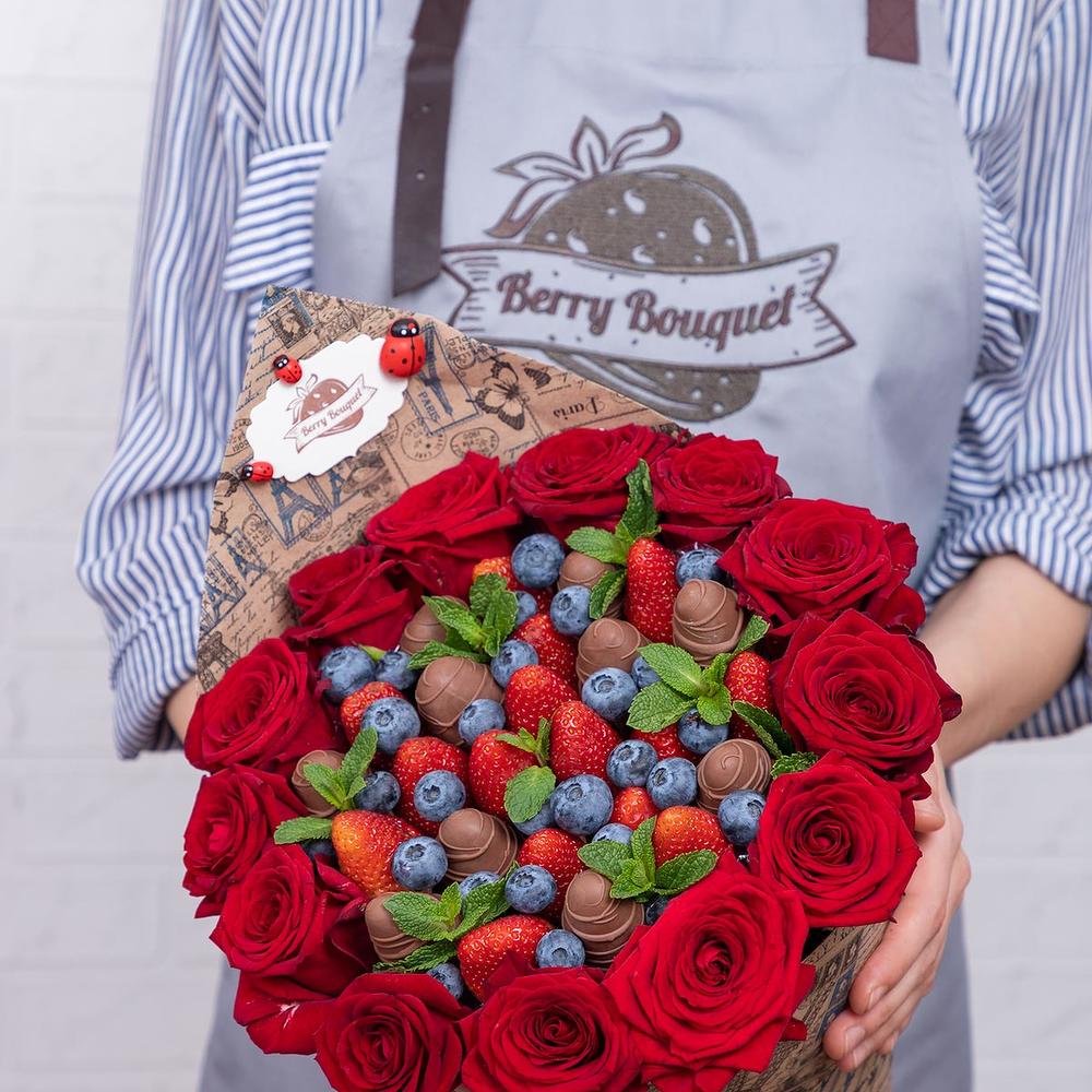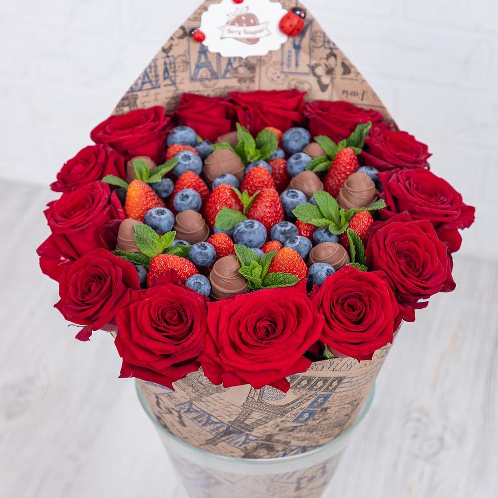 ягоды – 1000 гр.Роза – 13 шт.