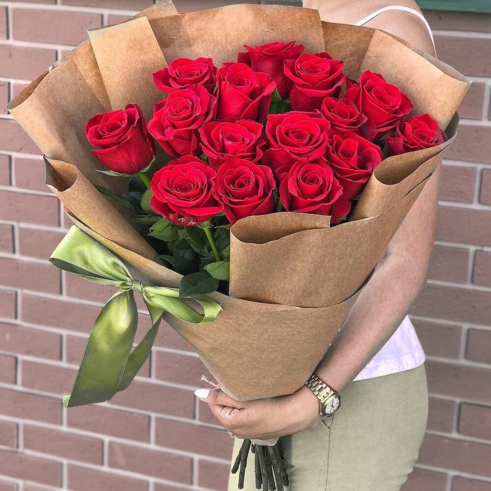 Букет из 15 высоких роз 70 см