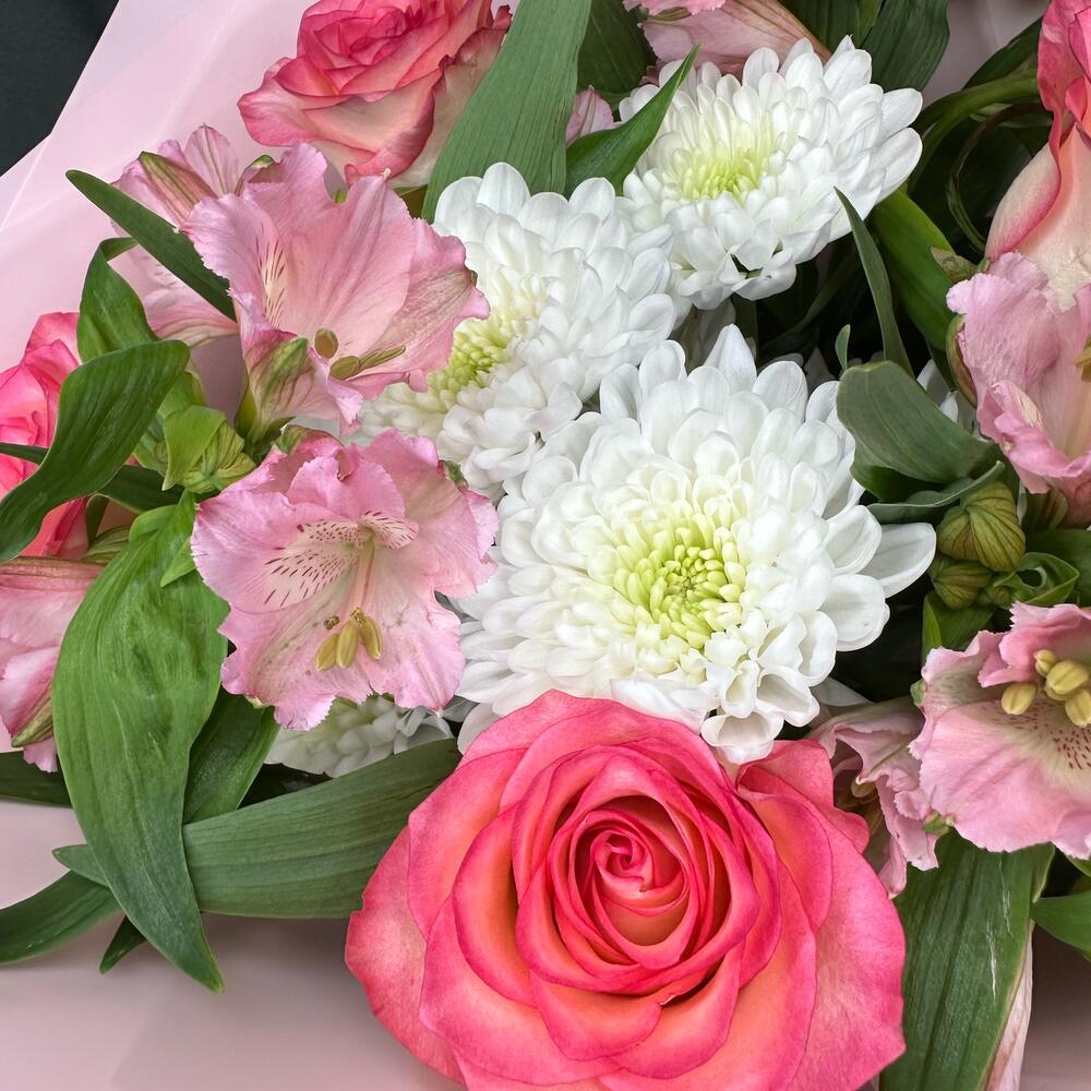 Букет из альстромерий, роз и кустовой хризантемы
