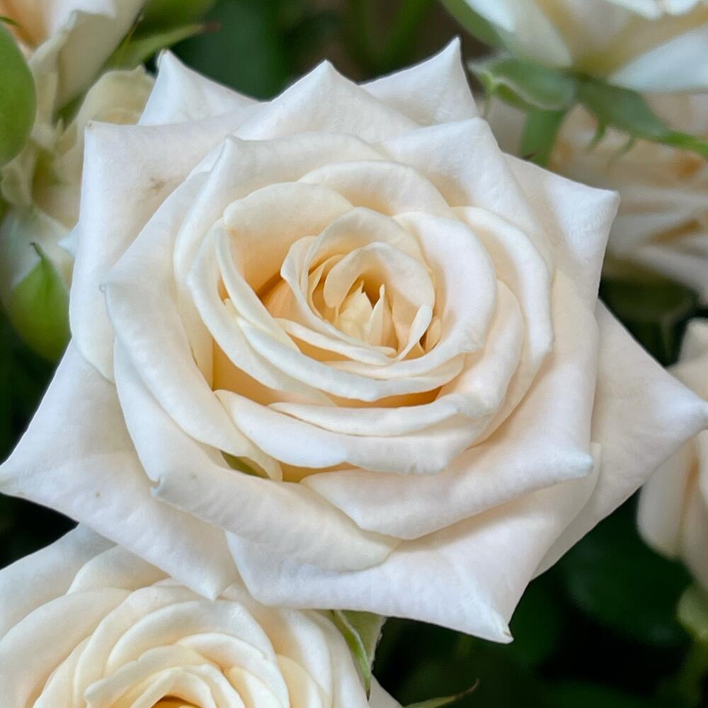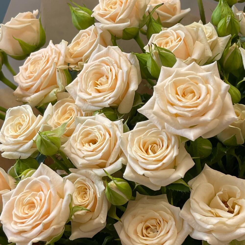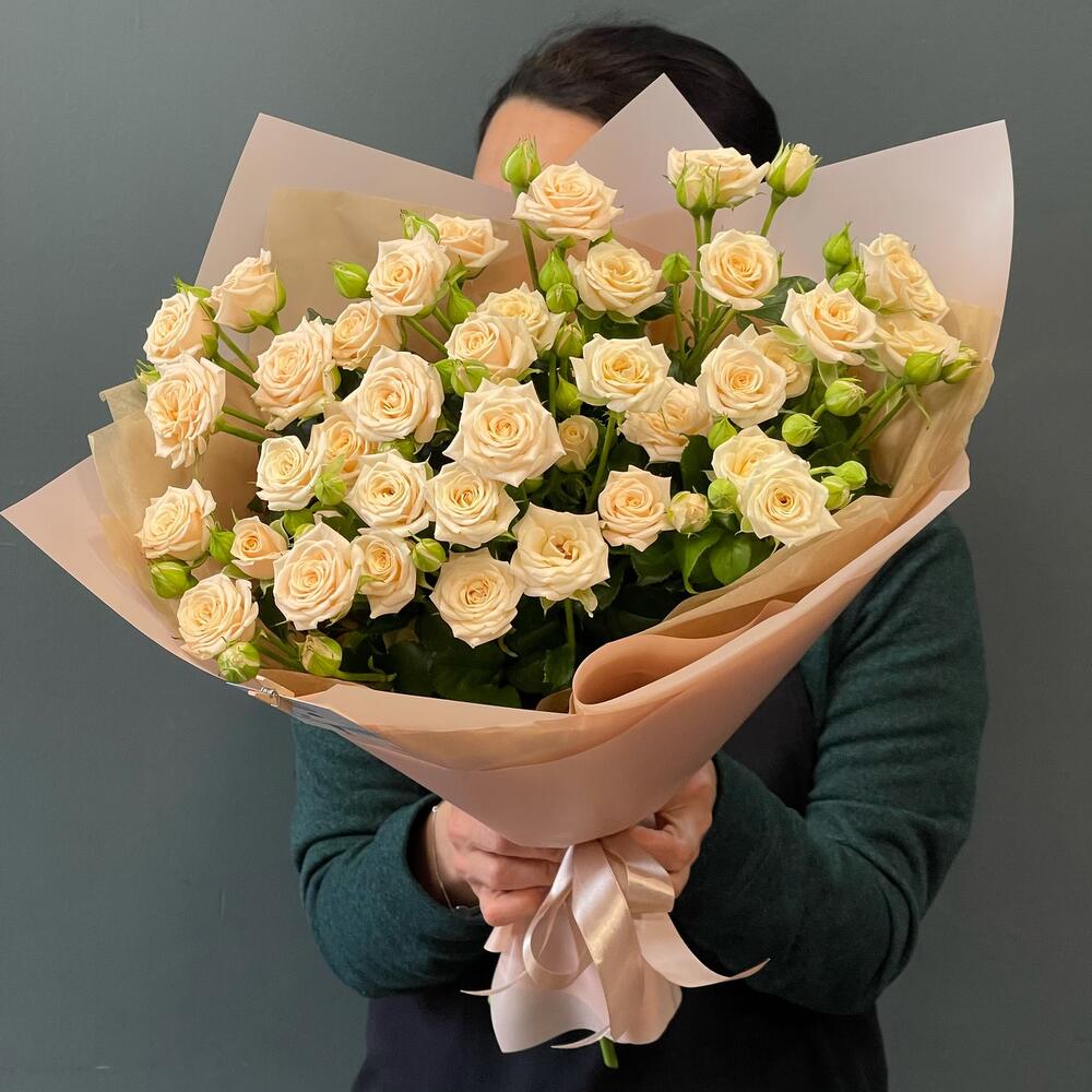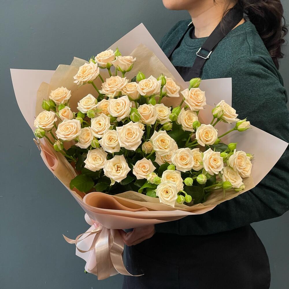 Лента – 1 шт.Роза кустовая – 9 шт.Упаковка – 1 шт.