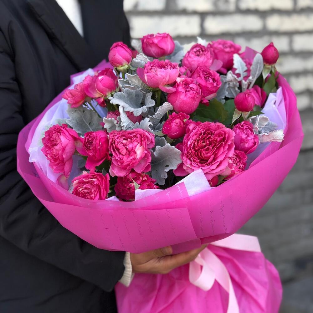 Гвоздики, Кустовые розы, Лизиантусы, Пионовидные розы, Розы