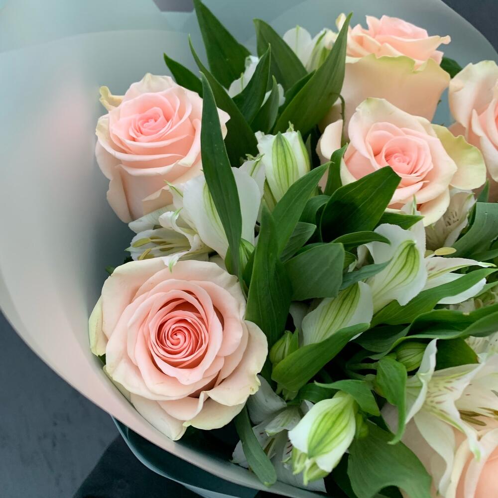 Роза – 7 шт.Альстромерия – 8 шт.Упаковка дизайнерская – 1 шт.