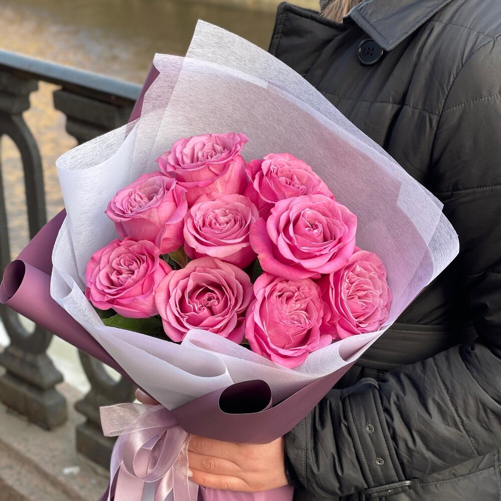 Букет из яркой розы Квин Краун 9 шт
