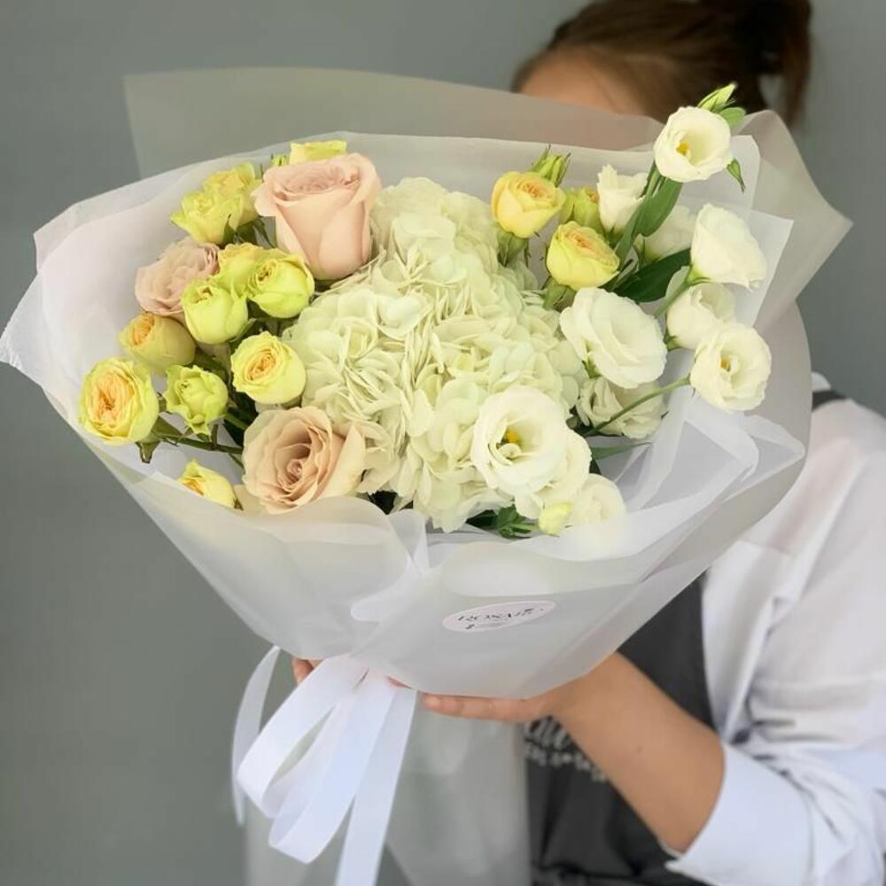 Гвоздики, Кустовые розы, Лизиантусы, Пионовидные розы, Розы