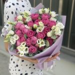 Букет Романтика из пионовидных роз и эустомы