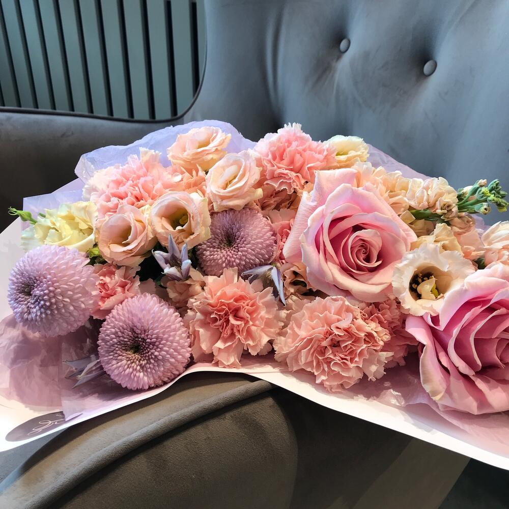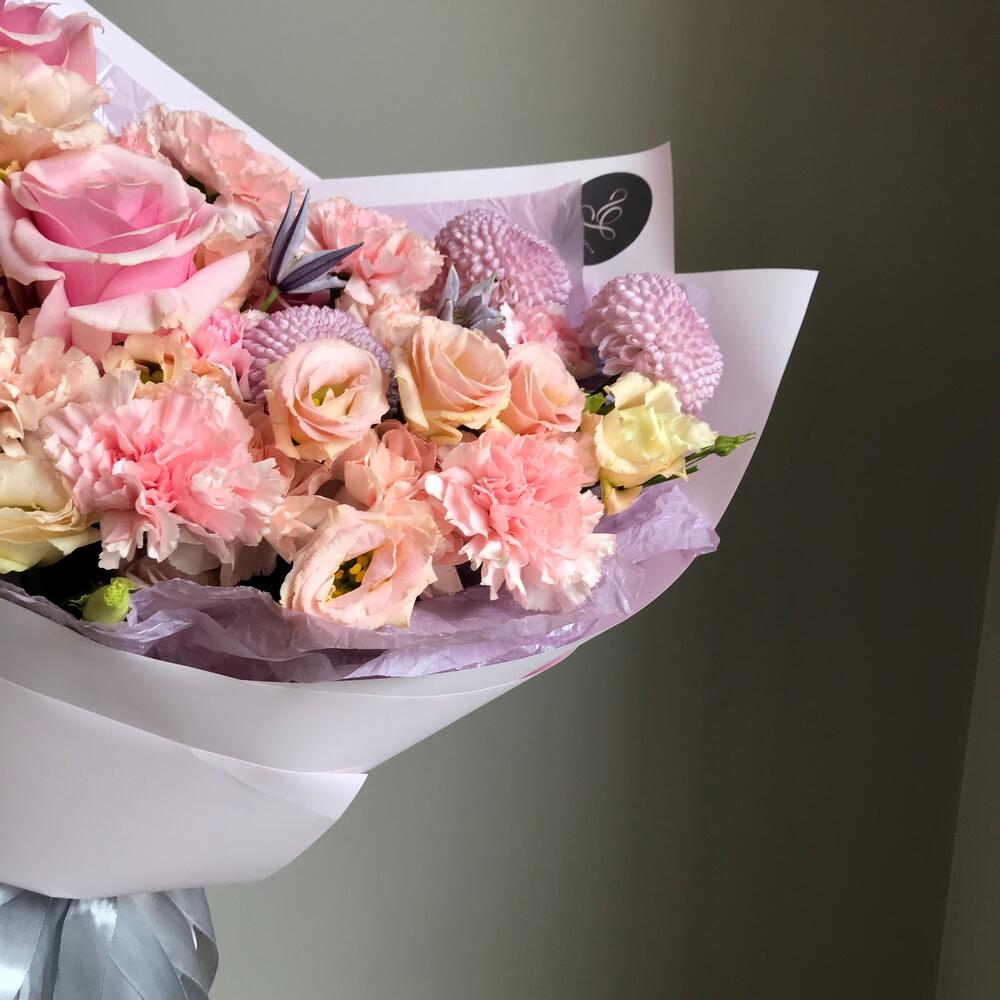 Категории: Гвоздики, Лизиантусы, Розы, Хризантемы