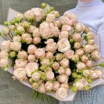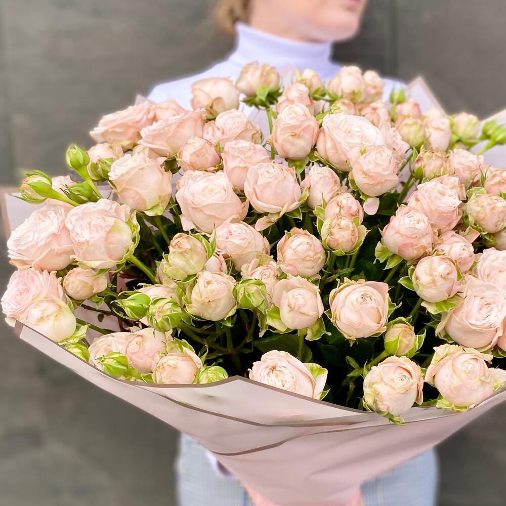 Букет с 25 пионовидными кустовыми розами премиум 80 см