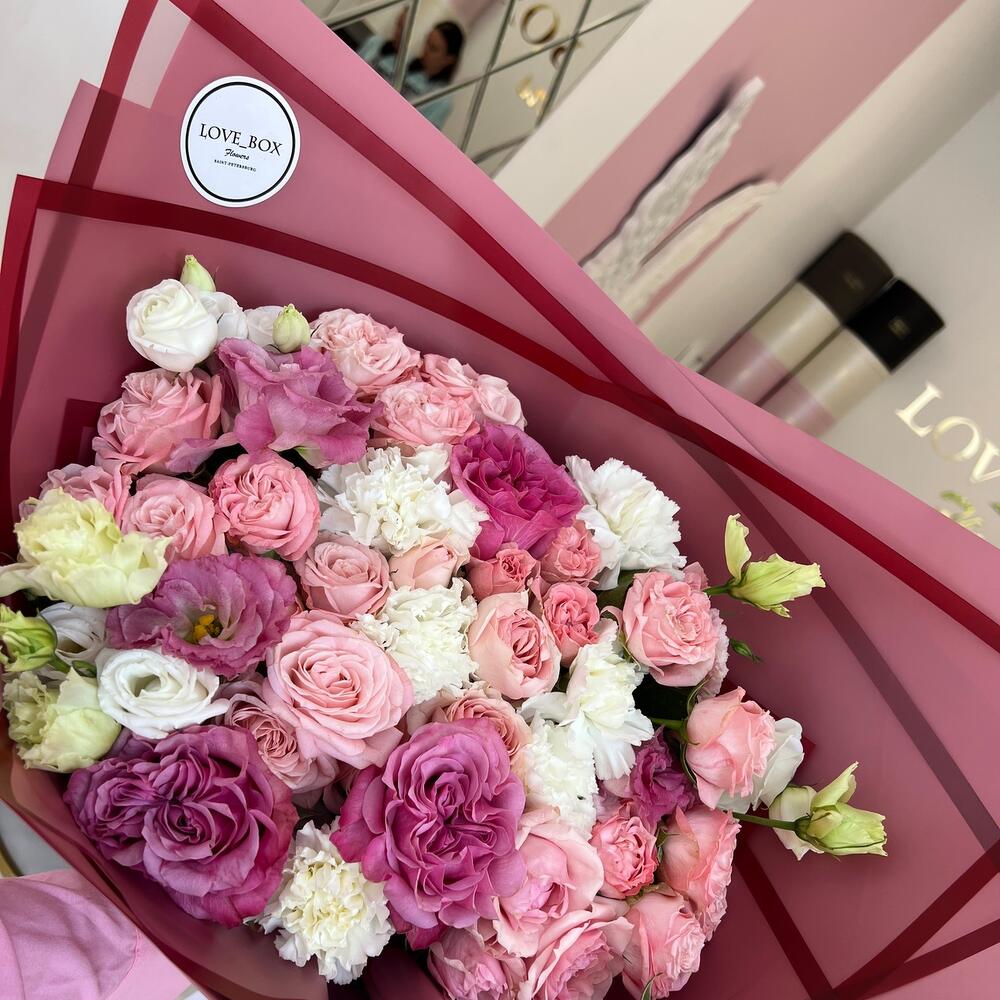 Категорий: Гвоздики, Кустовые розы, Лизиантусы, Пионовидные розы, Розы