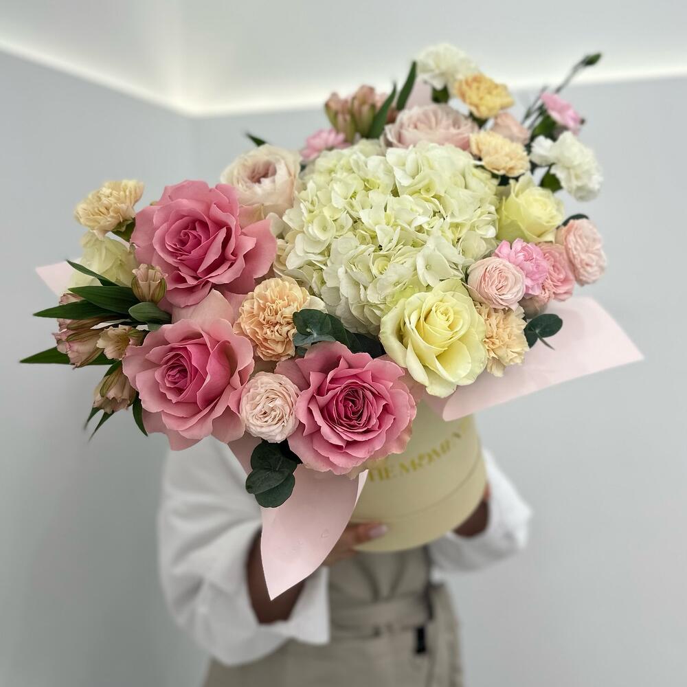Альстромерии, Гвоздики, Кустовые розы, Лизиантусы, Розы, Хризантемы