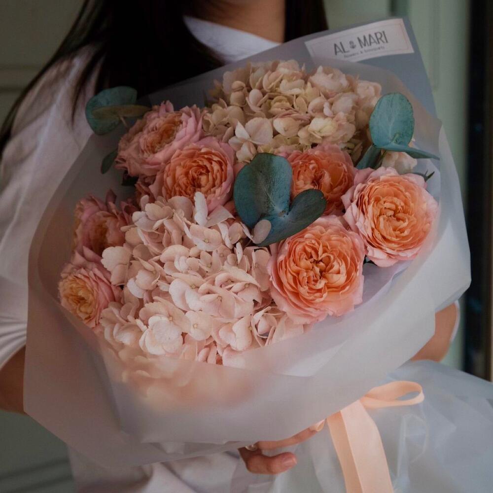 Гортензии, Кустовые розы, Лизиантусы, Пионовидные розы, Розы