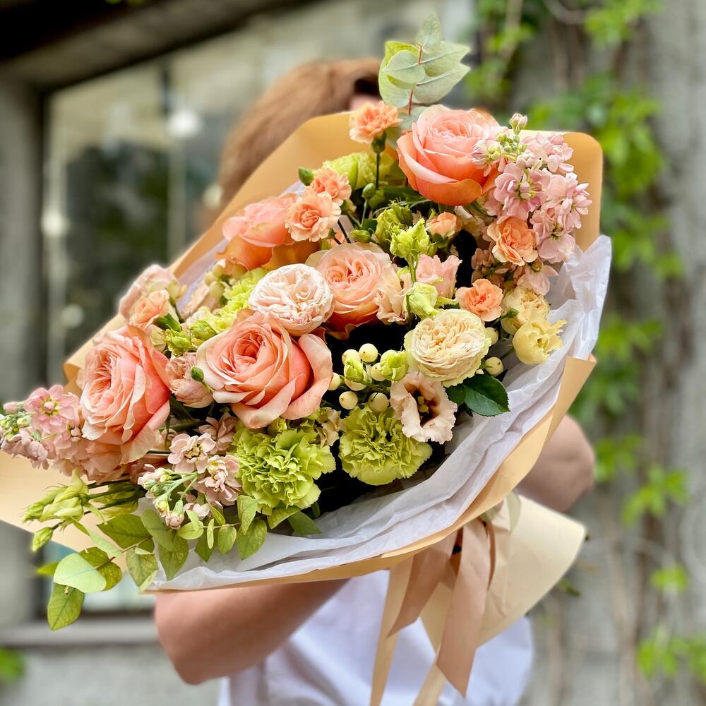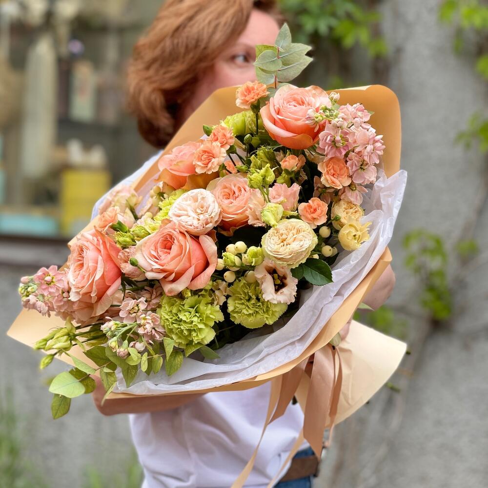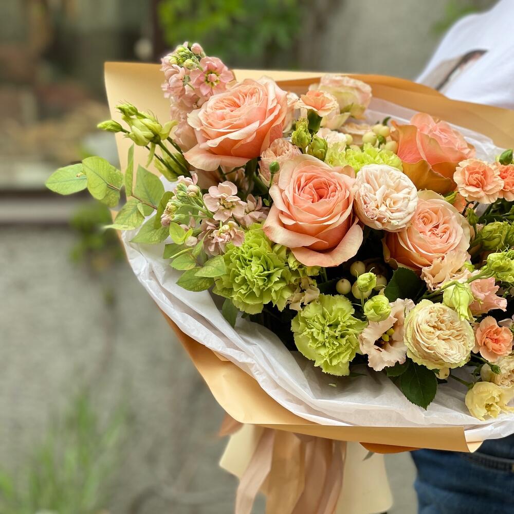 Гвоздики, Кустовые розы, Лизиантусы, Пионовидные розы, Розы