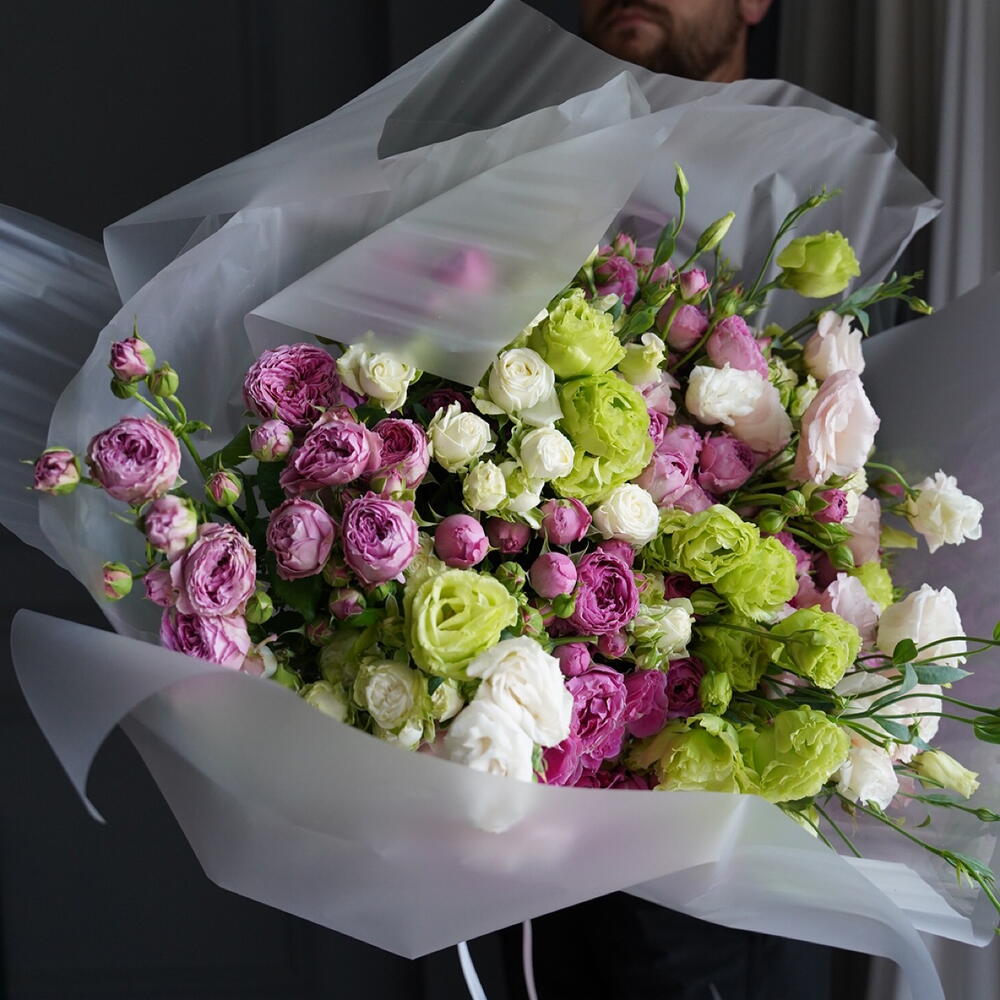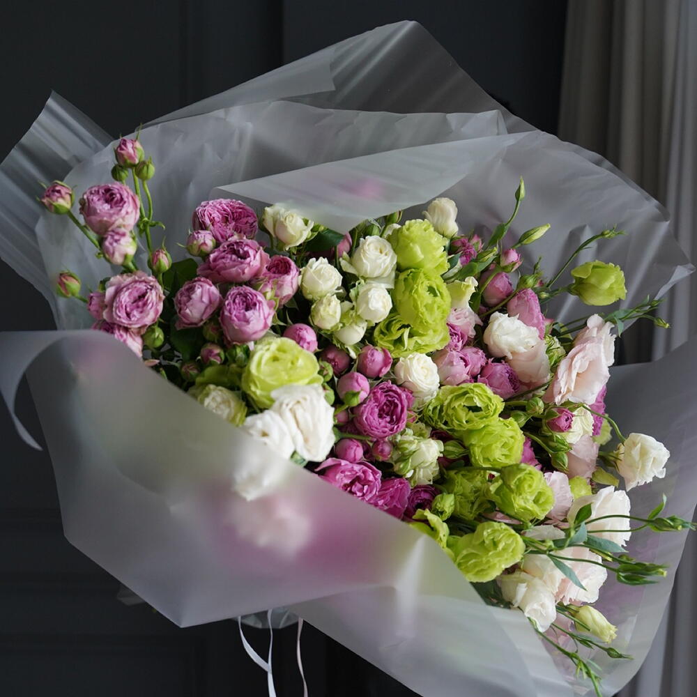 Гвоздики, Кустовые розы, Лизиантусы, Пионовидные розы, Розы