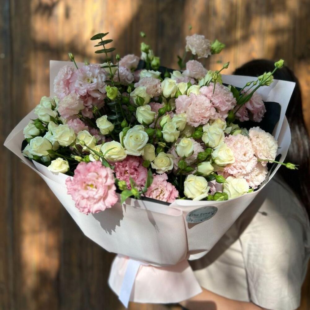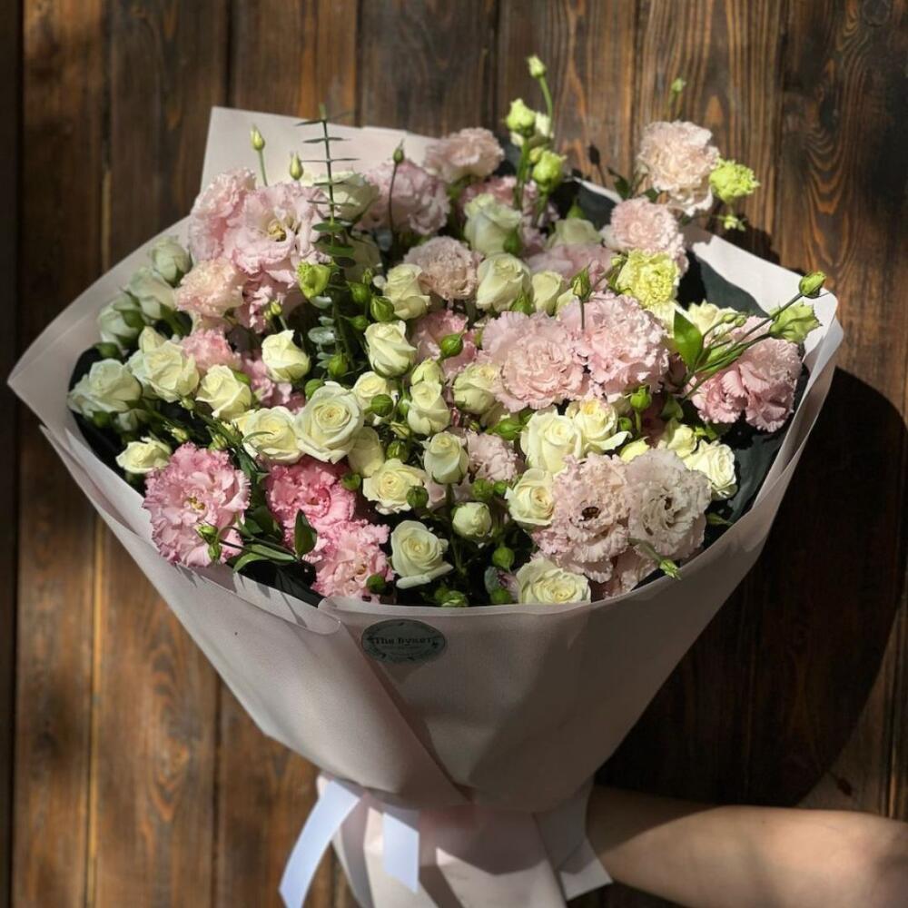 Альстромерии, Гвоздики, Кустовые розы, Лизиантусы, Розы, Хризантемы