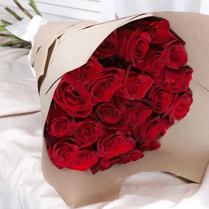 роза explorer – 25 шт.Упаковка крафт – 1 шт.Лента атласная – 1 шт.