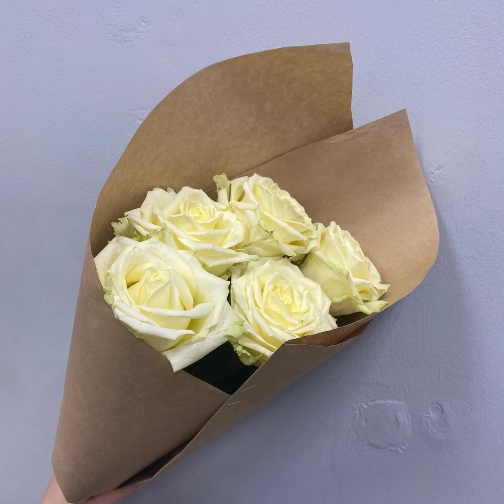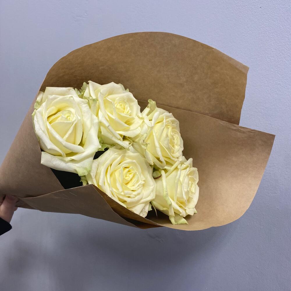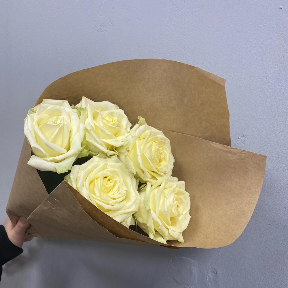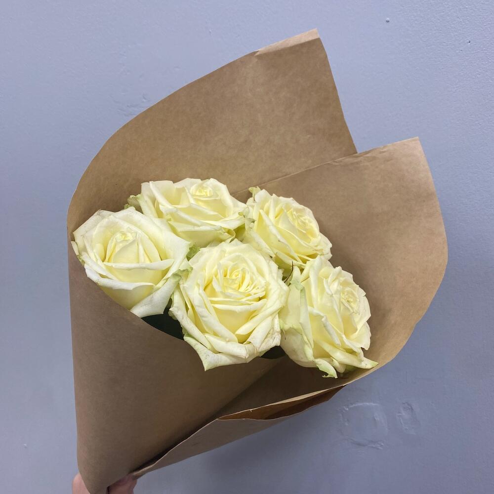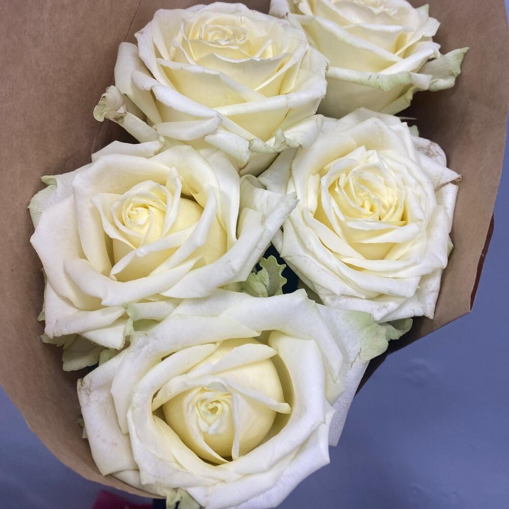 Моно букет из 5 белых роз