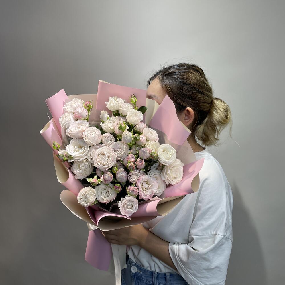 Гвоздики, Кустовые розы, Лизиантусы, Пионовидные розы, Розы