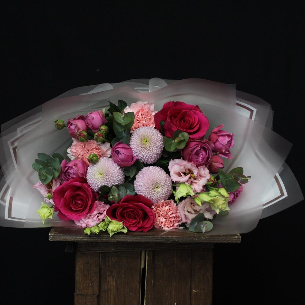 Категорий: Гвоздики, Кустовые розы, Лизиантусы, Пионовидные розы, Розы, Хризантемы