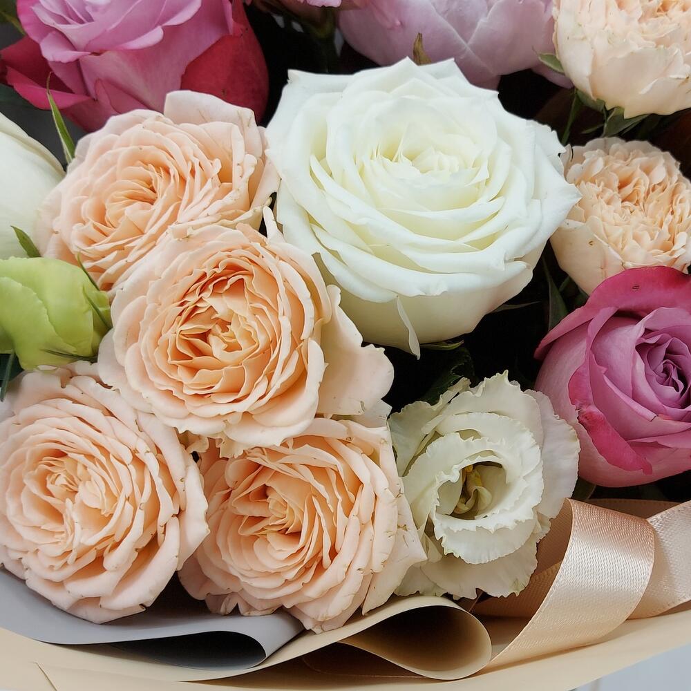 Категорий: Гвоздики, Кустовые розы, Лизиантусы, Пионы, Розы