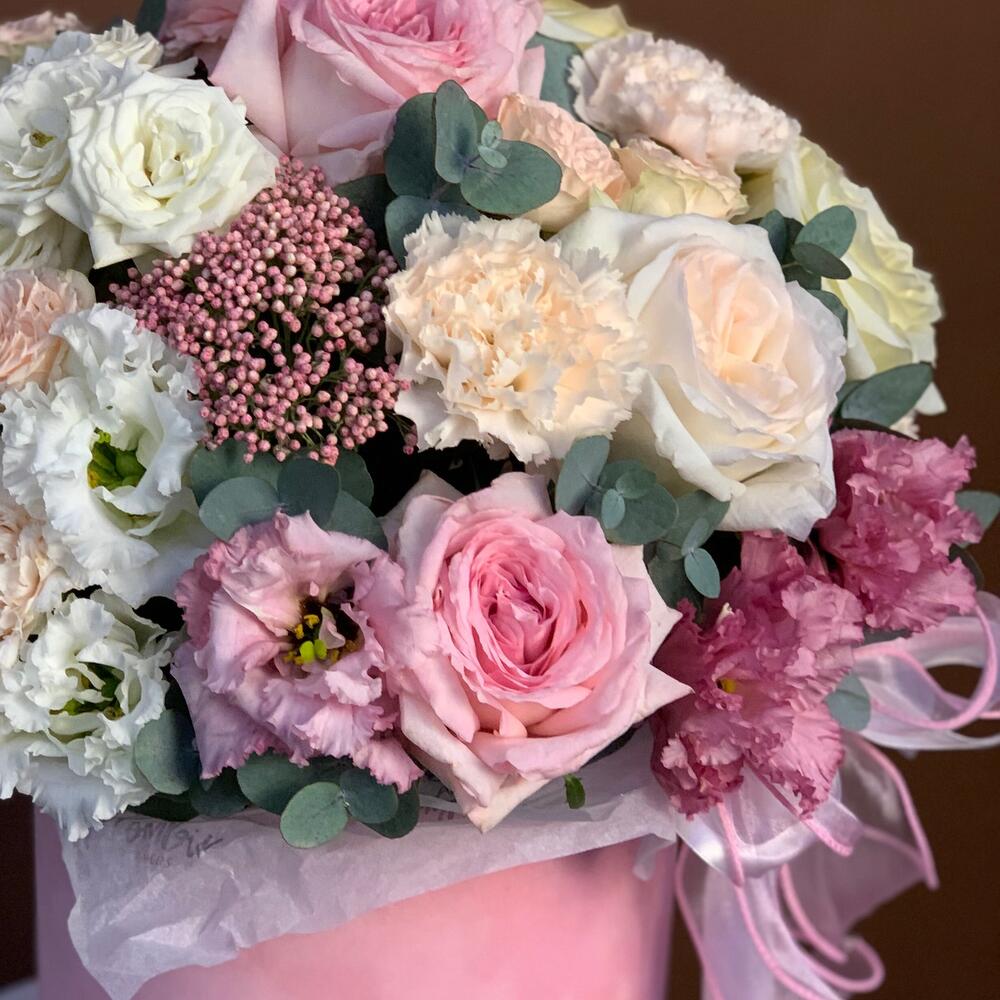 Гвоздики, Кустовые розы, Пионовидные розы, Розы