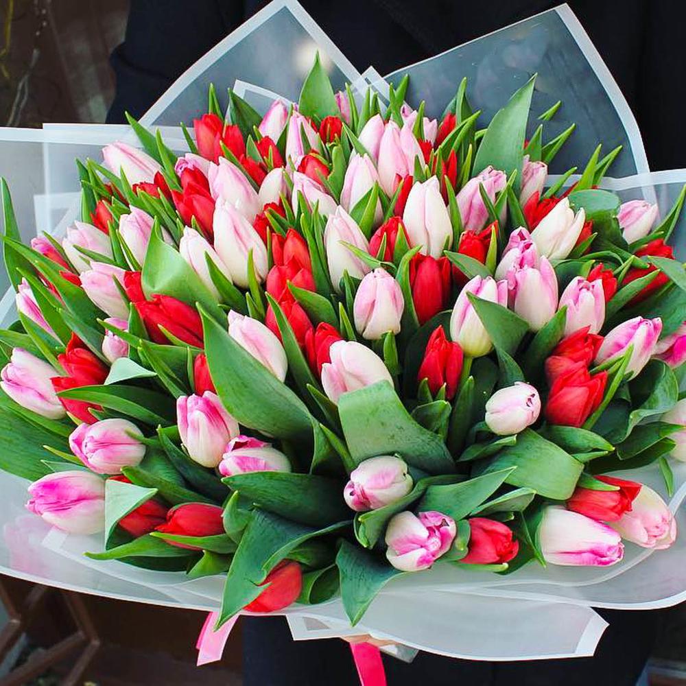 Тюльпан Голландский – 65 шт.Дизайнерская упаковка – 1 шт.Лента – 1 шт.