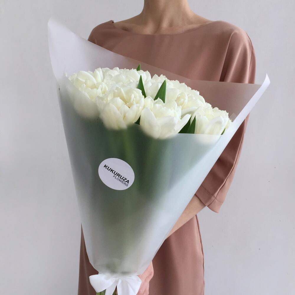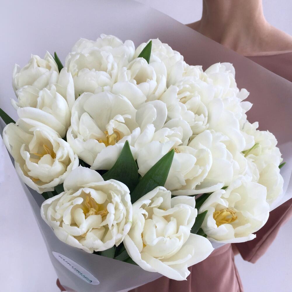 Пионовидный тюльпан – 19 шт.Пленка матовая – 1 шт.Лента атласная – 1 шт.